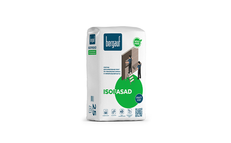 Клей для плит из пенополистирола и минеральной ваты Bergauf ISOFASAD зима, 25 кг