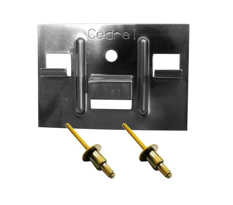 Комплект "Кляммер+Заклепка" это металлическое изделие из нержавеющей стали, применяется для скрытого крепления фиброцементного сайдинга Cedral Click.
