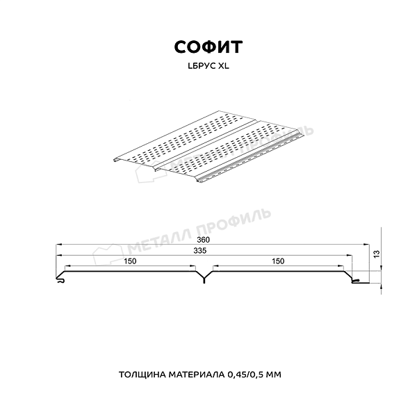 Софит МЕТАЛЛ ПРОФИЛЬ перфор. Lбрус-XL-14х335 (VikingMP E-20-8004-0.5)